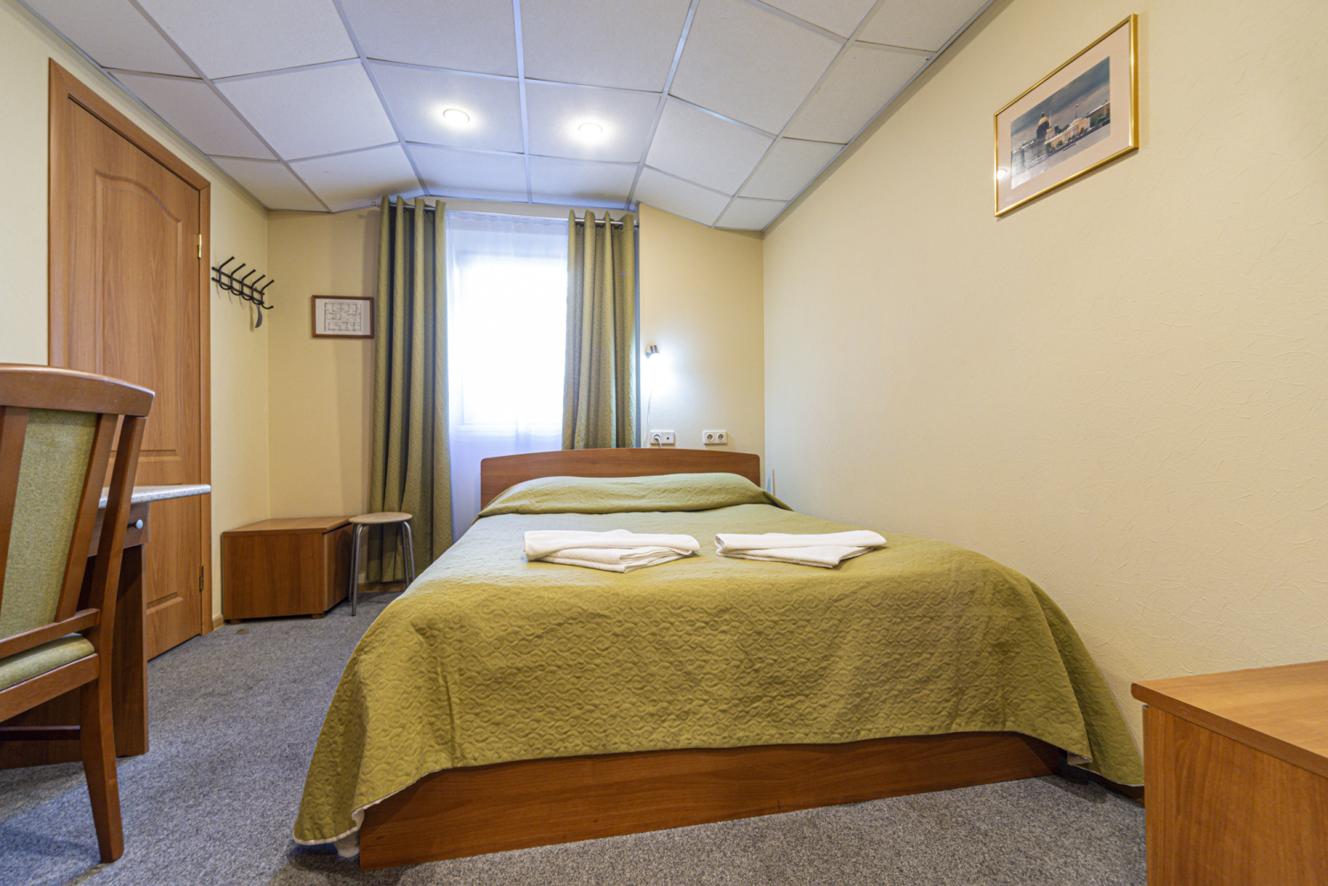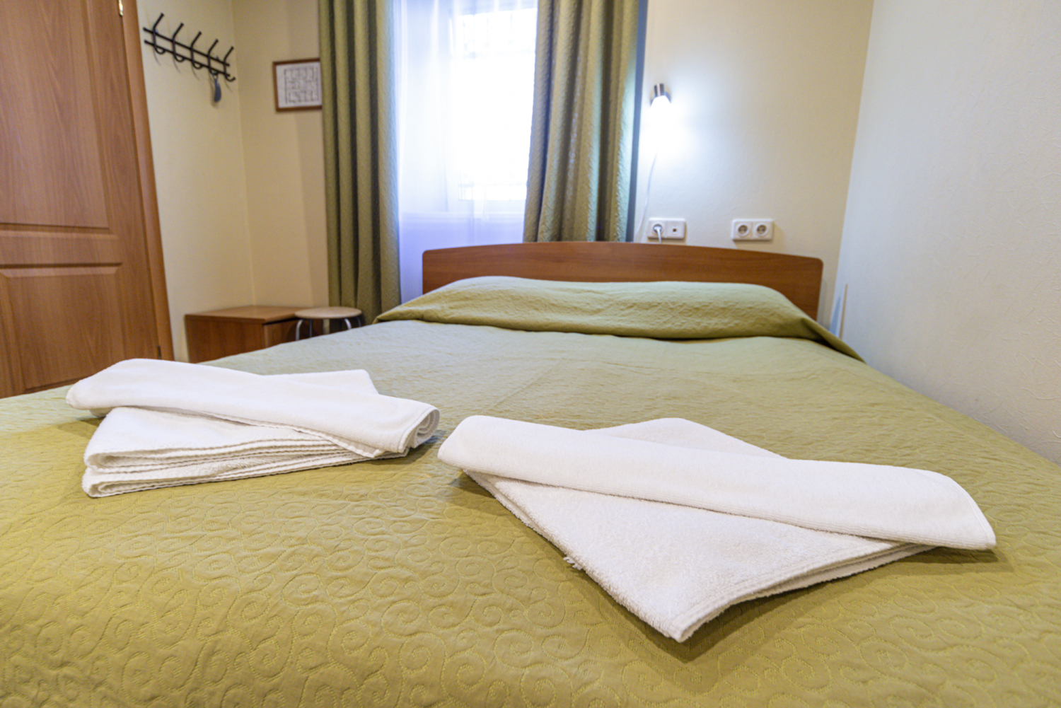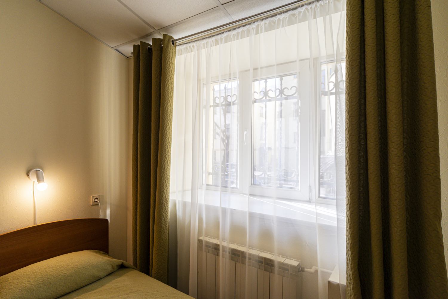 This room measures 16 square meters, is equipped 1 Dbl bed, TV, windows leave to the yard. The private bathroom has a shower, as well as complimentary toiletries. This room is Non-Smoking. In this room can live 1 person without sharing (price for Dbl room, the same as for 2 persons) or 2 persons (price for Dbl room). Max for living - 2 persons.