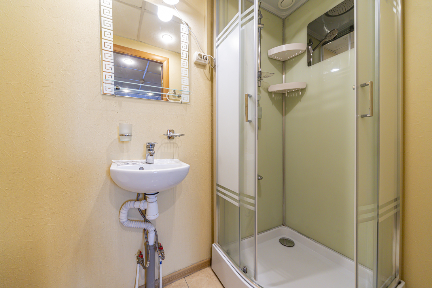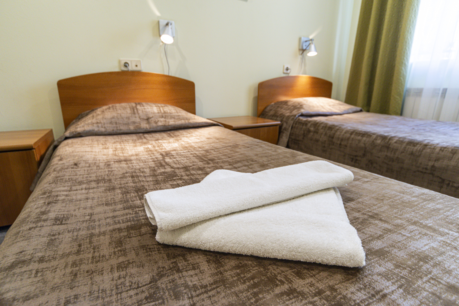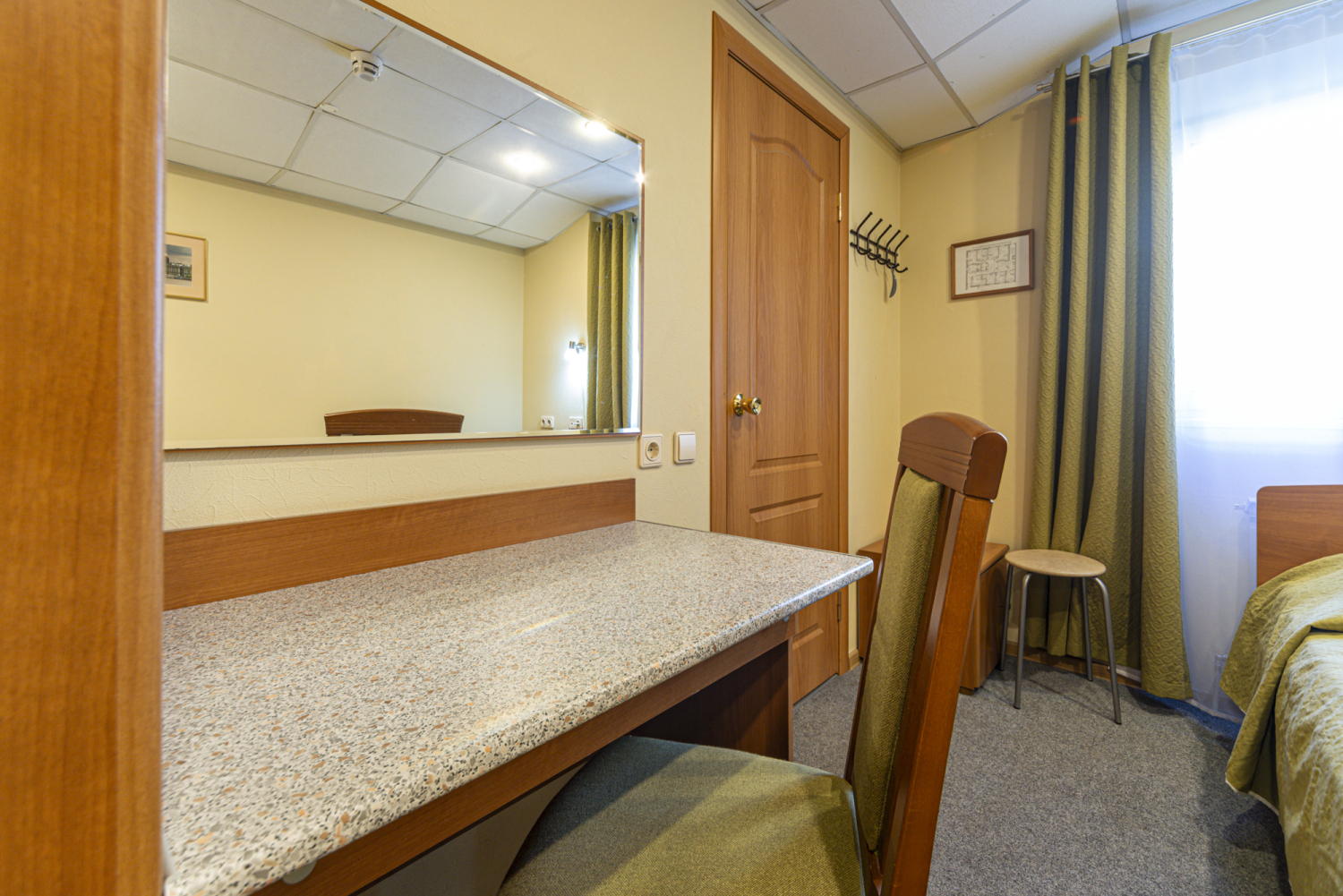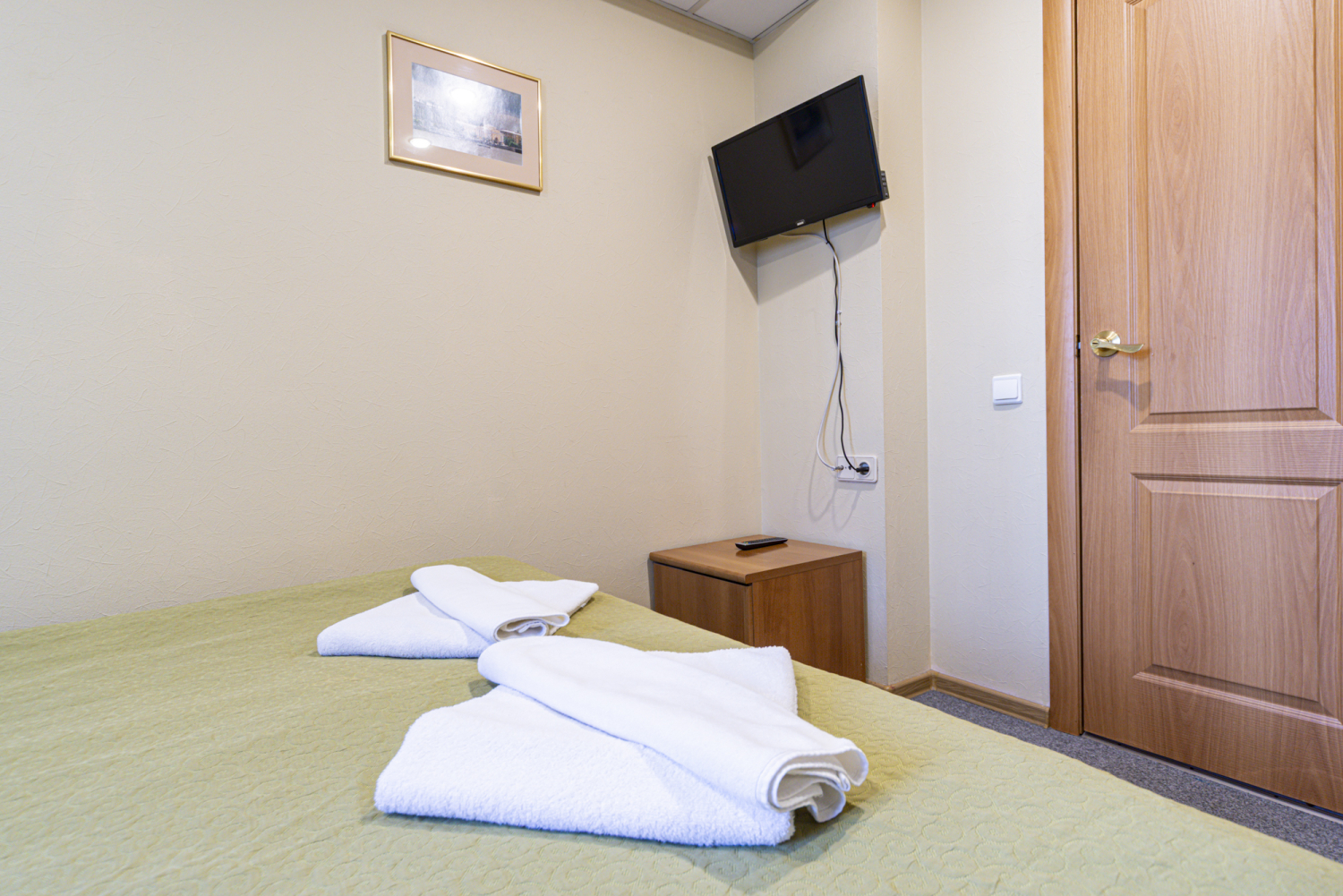 This room measures 16 square meters, is equipped 1 Dbl bed, TV, windows leave to the yard. The private bathroom has a shower, as well as complimentary toiletries. This room is Non-Smoking. In this room can live 1 person without sharing (price for Dbl room, the same as for 2 persons) or 2 persons (price for Dbl room). Max for living - 2 persons.